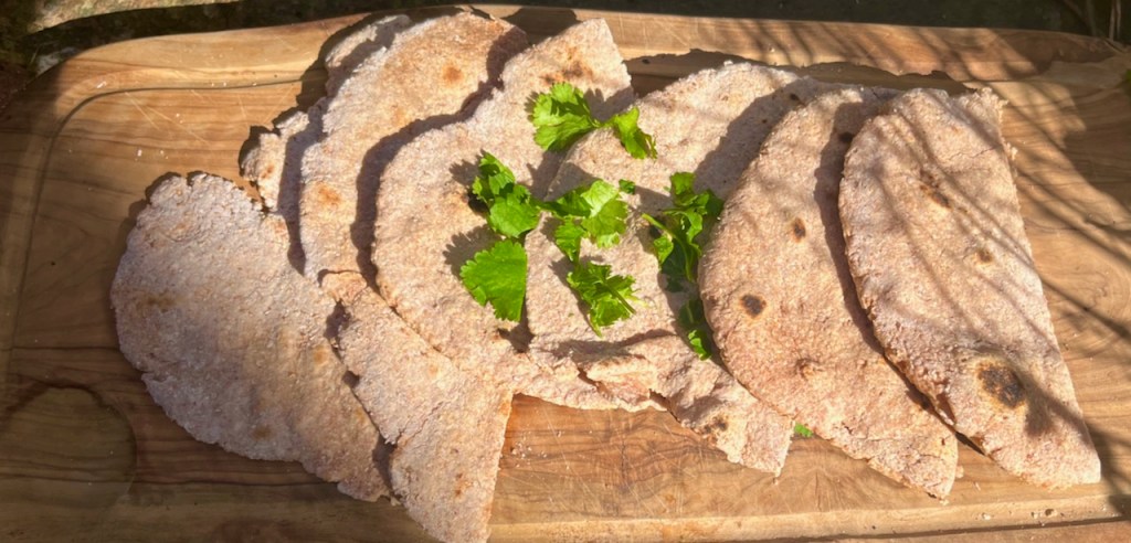 The starting point for making these flatbreads is that I have so much self-raising wholemeal flour in stock. Also I was craving some bread to have with my shakshuka brunch this morning and as I rarely buy supermarket bread as it is ultra processed (and I’m out of the habit of making my own sourdough bread) I wanted to rustle up something quickly.