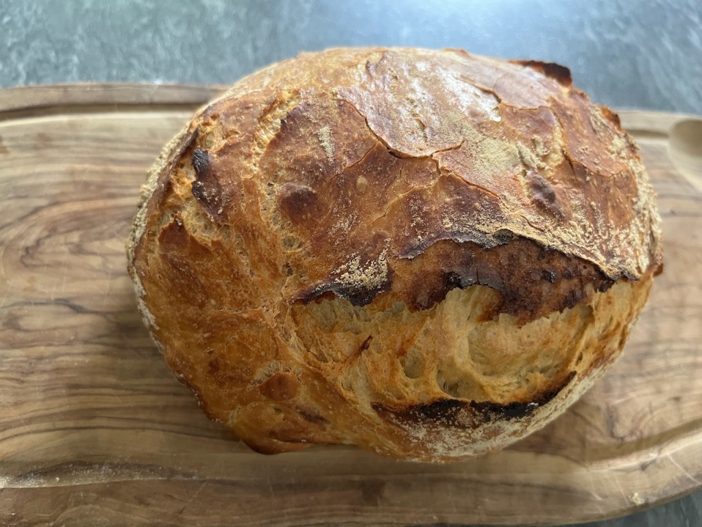 I’ve had mixed success with home made bread in the past – so often my loaves were stodgy and dense. But with this recipe my bread is much lighter and with big holes, which I really like. It also has the most amazing crust and slightly nutty flavour (because of the sesame oil coating the casserole dish).