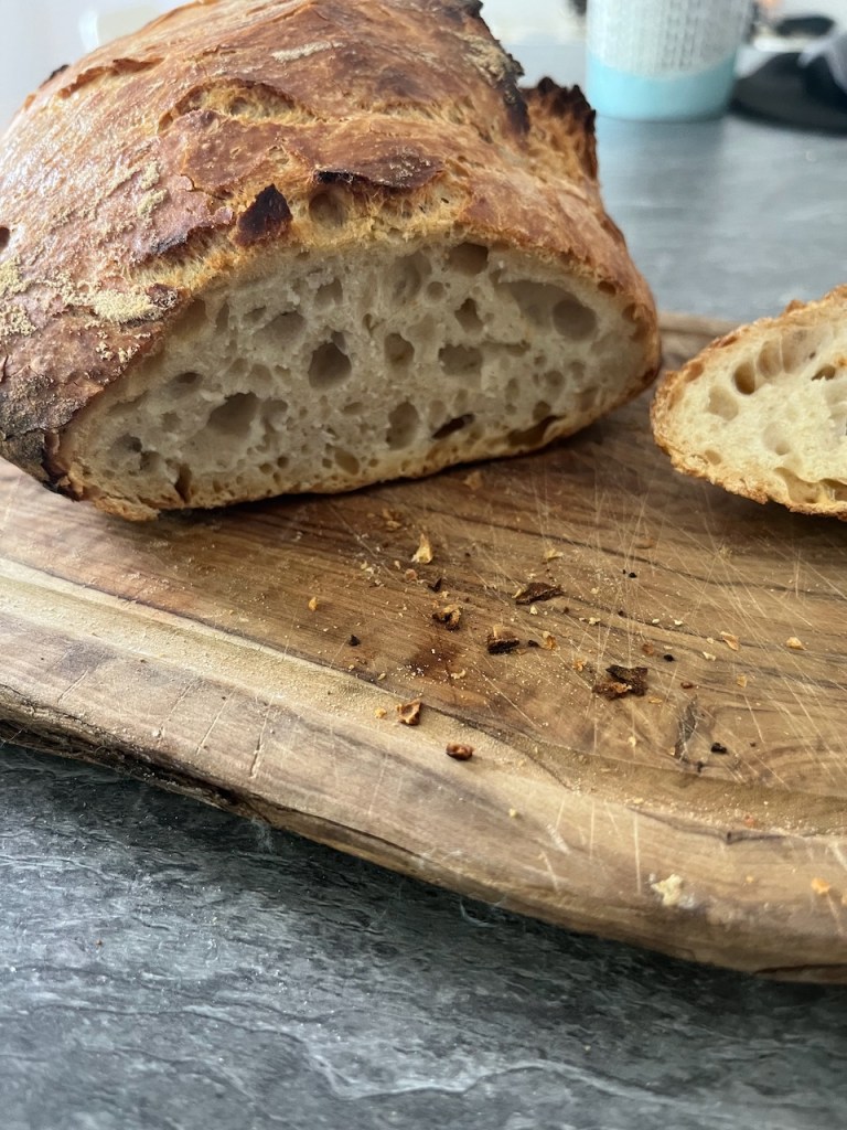 1. This bread is a bit like sourdough in that it has lots of holes, so quite light. Makes great toast.